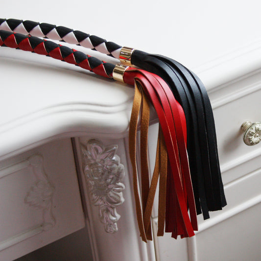BDSM Beginner Flogger – Perfect for First-Time Play! Black/White/Burgundy