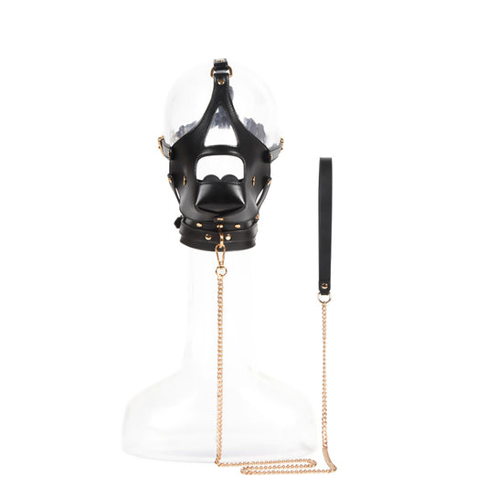 BDSM Bondage Leather Muzzle with Silicone Gag and Leash For Pet Play