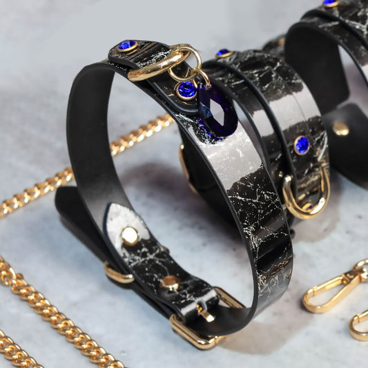Marble-Pattern Real Leather Bondage Set 8 Piece