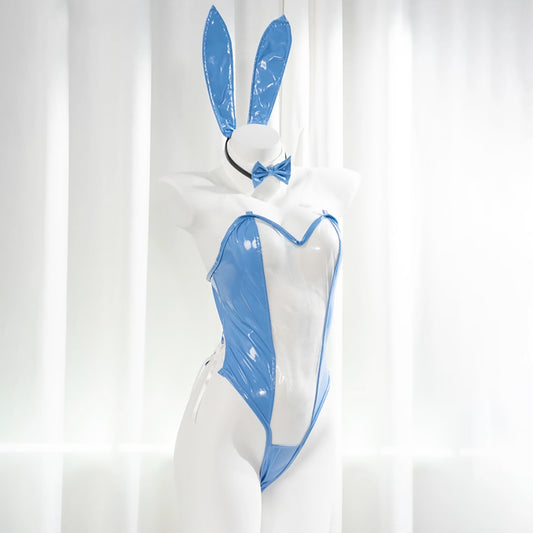 Patent Leather Sexy Reverse Bunny Girl Cosplay Costume Set