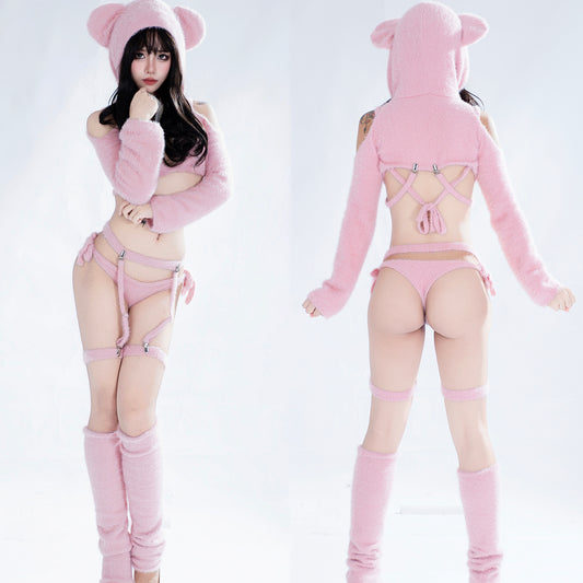 Cute Pink Soft Fluffy Fur Bikini Bear Cosplay Set