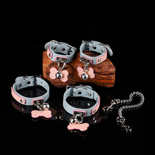 High-Quality Genuine Leather Bondage Handcuffs/Ankle Cuffs – Light Blue x Pink