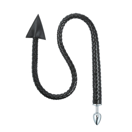 Black Devil Braided PU Leather Tail Stainless Butt Plug