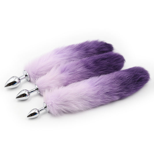 Furry Faux Fur Tail Tail Metal Butt Plug Gradient Purple