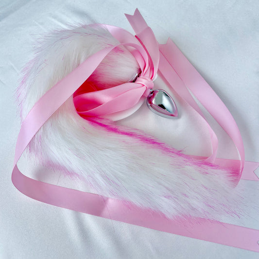 Pink Gradient Fox Tail Metal Butt Plug S/M/L