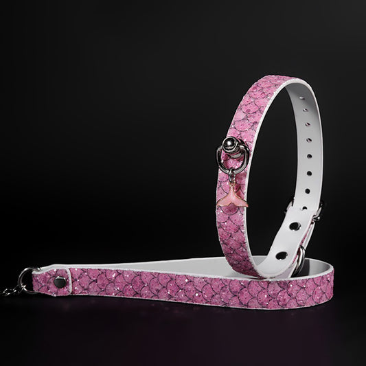 Luxury Mermaid Glow Genuine Leather BDSM Collar with Leash Pink