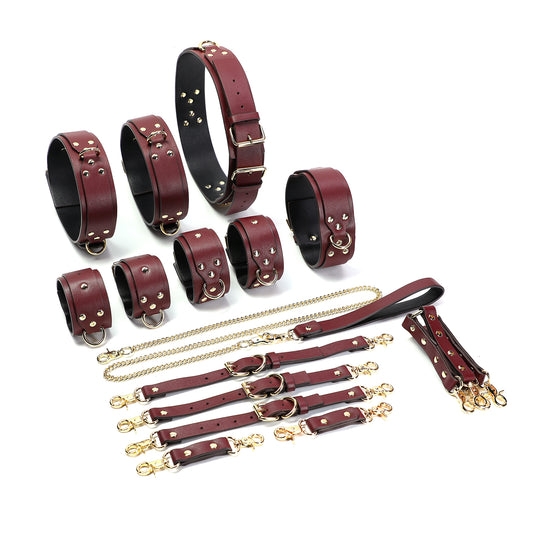 Deluxe Burgundy Vegan Leather Restraint Set 11-Piece