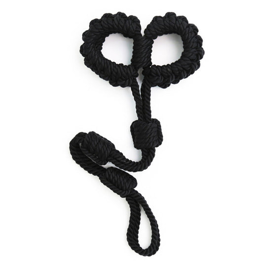 Soft Cotton Rope Bondage Wrist Cuffs with Leash Black