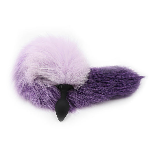 Furry Faux Fur Tail Silicone Butt Plug Gradient Purple/Pink