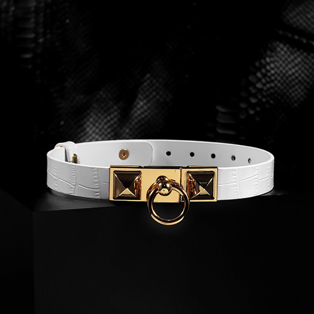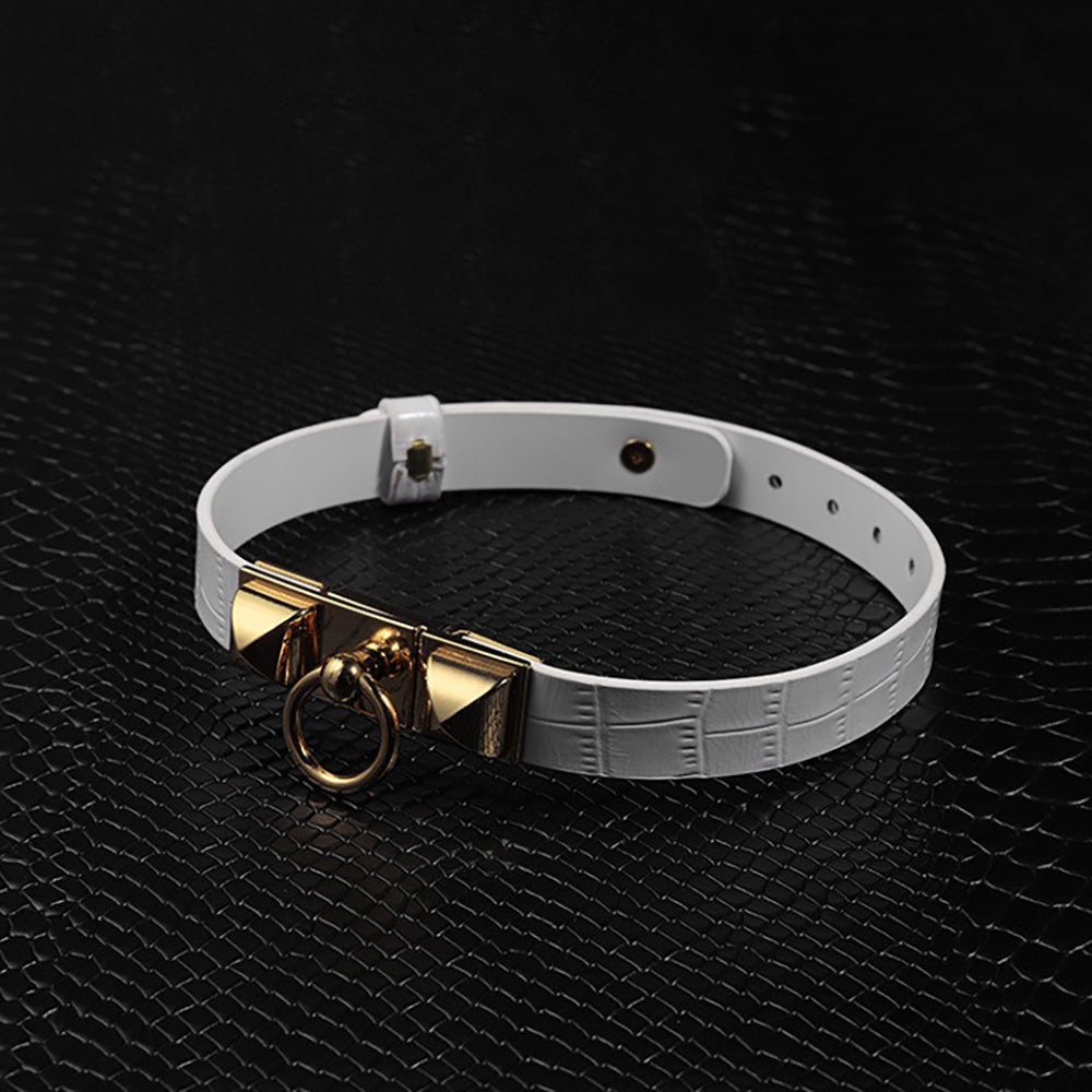 Pure Dominance - Premium White Leather BDSM Restraint Collar & Leash Set